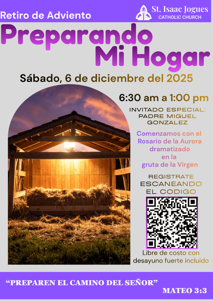 What better way to begin the new liturgical year than to gather in prayer. We invite you to our parish Advent Retreat, “Preparing My Home.” We will continue exploring the theme of “My Parish, My Second Home.” Come and experience a day of fellowship, prayer, and hope. Register using the QR code, or click HERE!