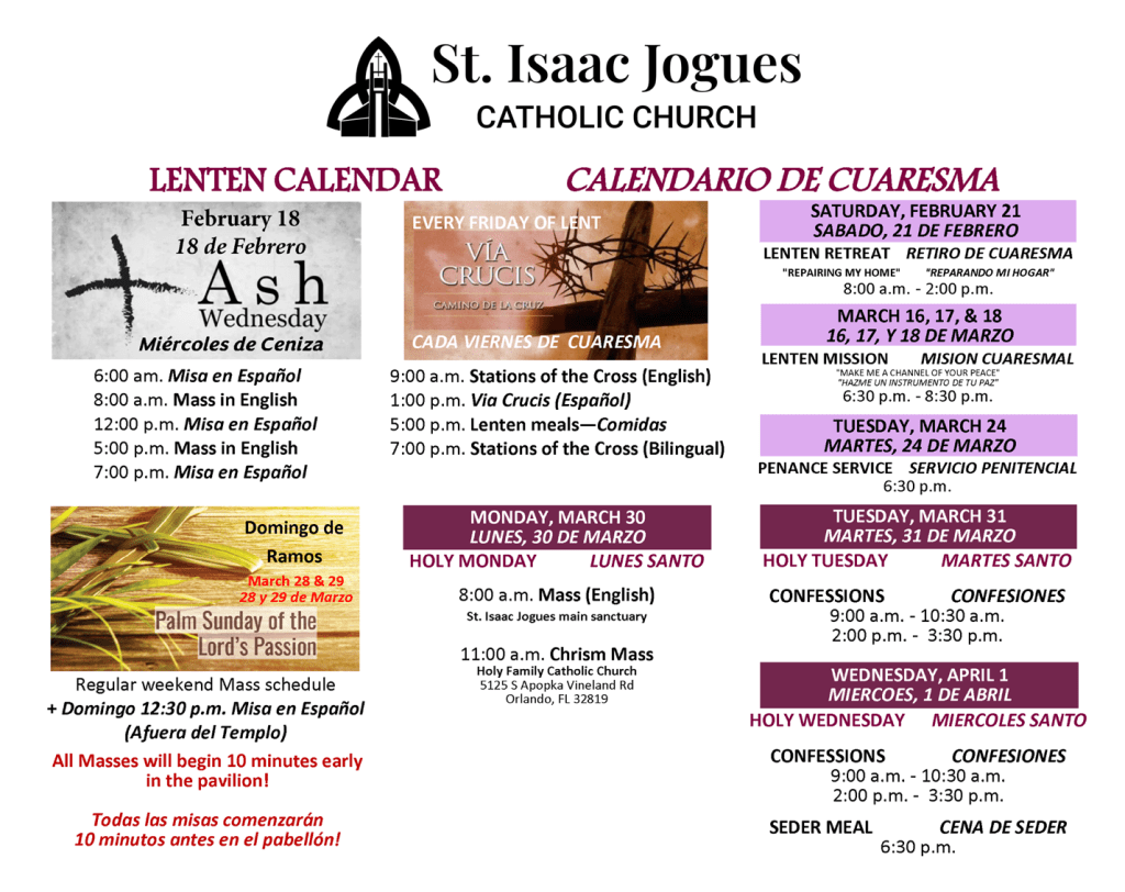Lenten Calendar/Calendario de Cuaresma